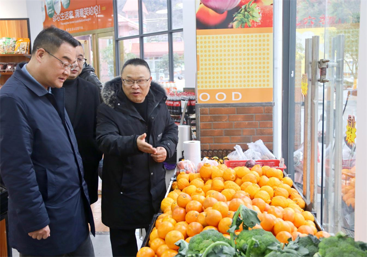 在資中縣水南鎮(zhèn)鄰農生活家門店,鄧華邊走邊看,不時詢問門店功能分區(qū)、經營狀況、生鮮采購配送等方面情況,并對門店供銷元素設計、規(guī)范化管理給予高度認可和表揚。